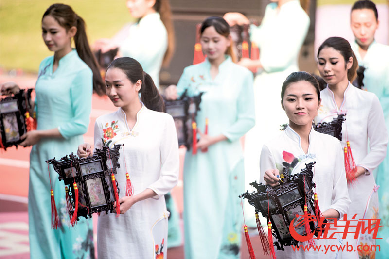 昨日廣府廟會(huì)的一景。這種打扮與所持宮燈式樣,明顯是現(xiàn)代導(dǎo)演對(duì)傳統(tǒng)的發(fā)展與模仿,但也可能形成新的民俗 記者 周巍 攝