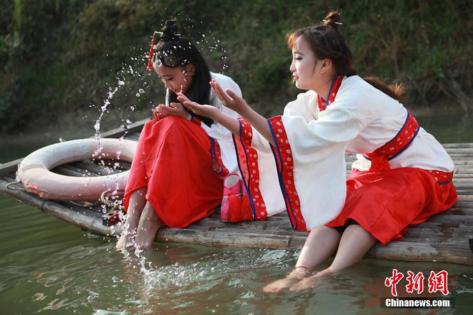 常州重現(xiàn)上巳節(jié)古風(fēng) 漢服美女“曲水流觴”