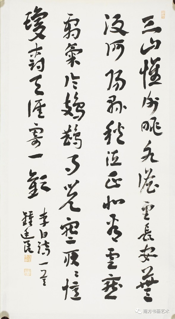 鐘廷良少年時期在外公的指導下學習傳統(tǒng)文化,同時學習書法和書畫鑒賞。其時碑帖讀本稀缺,便從鄉(xiāng)賢處請教受益。及至青年時期(上世紀九十年代),開始接觸晉、唐、宋、元、明、清名帖,方始涉獵顏真卿、米芾、黃庭堅及清人王鐸。然未得法,故面目凌亂。及至新世紀千禧年后(二000年后)才逐漸探求《月儀章》、《急就章》等章草法帖,再參近現(xiàn)代沈曾植、王蘧常等家藏作品后,結字漸有起色。其間,也苦臨《散氏盤》《石鼓文》《城隍廟記》《袁安碑》等篆籀名刻。