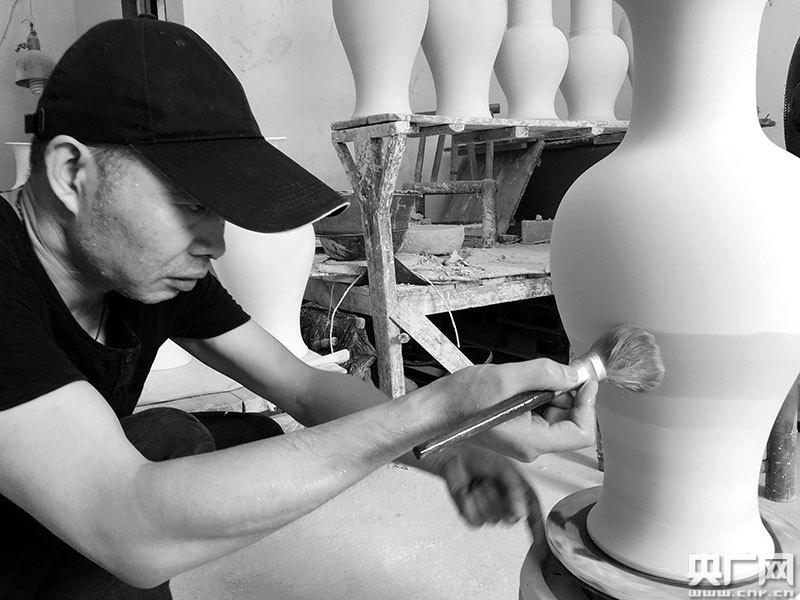 王曉峰:每道工序都不能大意,還要有點(diǎn)運(yùn)氣,突然間天上飄來(lái)一朵云,氣里或者是哪里落了一點(diǎn)鐵質(zhì)在上面,你沒(méi)辦法。所以我們景德鎮(zhèn)傳統(tǒng)藝人里邊有一句老話,泥塑火燒的東西誰(shuí)能保得到,萬(wàn)里無(wú)云是很難的事情。但是我個(gè)人覺(jué)得可能我們就得做萬(wàn)里無(wú)云的東西。