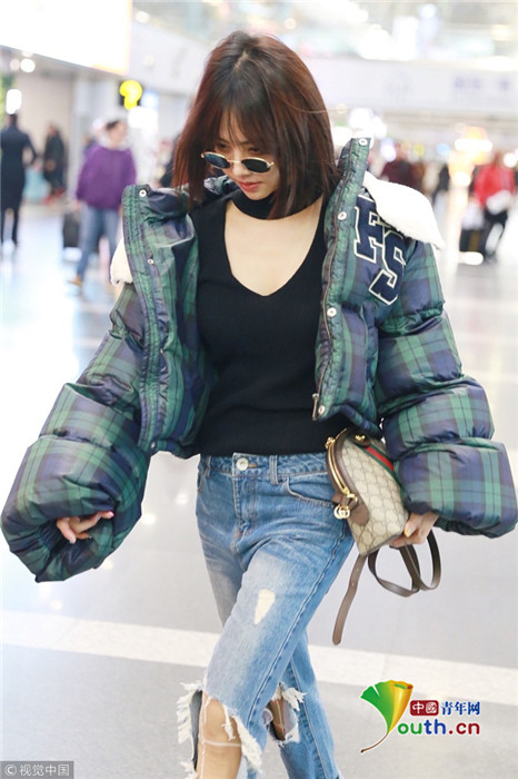 2017年12月8日,北京,蔡依林現(xiàn)身機(jī)場,她身穿夸張的格子羽絨服,袖子能藏雷成功擁有“麒麟臂” ,不知是不是在cos鐵臂阿童木。她身穿深V內(nèi)搭秀胸前春光,氣場全開似走秀,牛仔褲里似乎套著透明“秋褲”,凹造型不忘保暖!