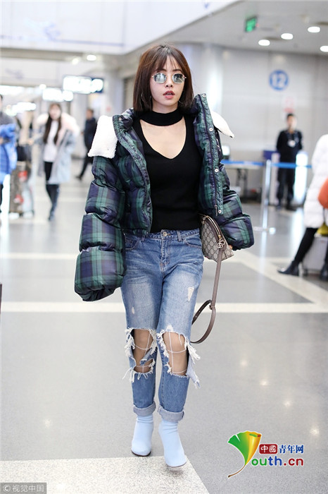 2017年12月8日,北京,蔡依林現(xiàn)身機(jī)場(chǎng),她身穿夸張的格子羽絨服,袖子能藏雷成功擁有“麒麟臂” ,不知是不是在cos鐵臂阿童木。她身穿深V內(nèi)搭秀胸前春光,氣場(chǎng)全開(kāi)似走秀,牛仔褲里似乎套著透明“秋褲”,凹造型不忘保暖!