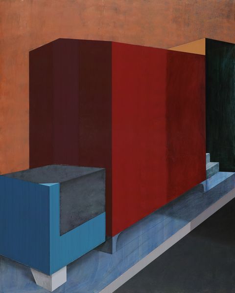 趙新宇從以往的作品中提取出了作品畫面的三個基本空間模型,“凹”“凸”“平”,并且在此次個展作品當中非??桃獾囊载Q構(gòu)圖來強化這一理式概念,甚至試圖探究以往作品如果以一種“剩余”的狀態(tài)呈現(xiàn),意義生成的核心會發(fā)生怎樣的轉(zhuǎn)變。《室外#1垂直,傾斜》右下角垃圾箱輪子的處理,是以暗色塊暗示了原物的形態(tài),并沒有再做深入的刻畫,而實際上這一形態(tài)往往是作品底層的保留;《室外#3》右上部,你可以說是割破了的畫面,或者是基于無意識的,總之對于結(jié)構(gòu)穩(wěn)定的畫面而言,像極了一次意外的產(chǎn)物。在某種意義上它超越了象征界,也即超越了經(jīng)驗所能夠涵蓋的內(nèi)容。但是新作當中似乎更有新的趨向,比如《室外#3》和《室外#4》兩件作品,一件觸及畫面的變形,另一件暖色調(diào)的嘗試則引發(fā)了某種藉里科式的憂郁,或許這是匱乏和剩余的并發(fā)癥,某種飄散的內(nèi)容甚至帶給人一種訴諸作品本身相反的感受。