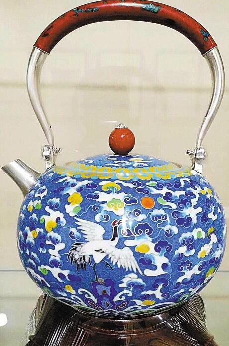 盛世一品純銀景泰藍(lán)配螺鈿大漆煮水壺