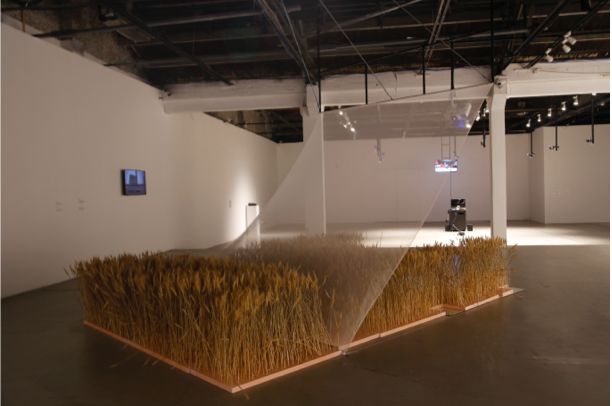 《群落交錯帶》包含一個雙向的敘事結(jié)構(gòu)。兩點之間的空間,不是一條線,而是一片虛空,好像一個可以不斷開合的通風(fēng)口袋,容納無限精神與想象之力。故事是關(guān)于一個古怪的航空棲息地,那里盤旋著一個進化的自然-技術(shù)飛行復(fù)合體(飛行器)。這個故事還講述著:一個凡人走進自然,結(jié)合植物和電子物件創(chuàng)造出一個會飛翔的生命,接著捕捉記錄下這個新的飛行生物,并將其融入一個有關(guān)大氣的真實-虛構(gòu)作品。