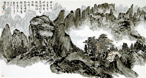王和平不僅能書(shū)寫(xiě)2尺的大字,還能寫(xiě)篆書(shū)、隸書(shū)、行書(shū)、草書(shū)、楷書(shū),他尤其擅長(zhǎng)以指書(shū)寫(xiě)長(zhǎng)線條幅,還能書(shū)寫(xiě)小到1寸左右的楷書(shū)、行書(shū)、草書(shū)等各種書(shū)體。“從他的《黃山系列》,我看到了一個(gè)堅(jiān)強(qiáng)的古典腳步,追尋在范寬的《谿山行旅途》中,沐李唐的《萬(wàn)壑松風(fēng)圖》,聽(tīng)馬遠(yuǎn)的《踏歌圖》……一個(gè)精美絕倫的藝術(shù)時(shí)代遠(yuǎn)逝而去,念天地之悠悠,獨(dú)愴然而涕下。留幽幽懷古者,追憶圣賢高士清歌古琴于卷軸中的絕美風(fēng)騷。王和平和我都是這個(gè)幽幽懷古者,追求高貴古典精神的尋賢之人?!边@是評(píng)論家豐川在他的《心有千像,十指墨弦》一文中評(píng)價(jià)王和平的指書(shū)所述。