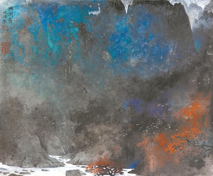 晚年,宋文治開始了以潑彩法入畫,在嚴謹?shù)姆ǘ戎腥谌肓嗽S多偶發(fā)性的生動效果,畫面從此氤氳彌漫、色彩斑斕,其個人風格亦發(fā)生了較大變化,使“宋家山水”的面貌進一步得到確立。此次展覽共展出宋文治所創(chuàng)作的四十多件精品,這些作品主要展現(xiàn)宋文治藝術從“中年出新”到“老年求變”的創(chuàng)作軌跡及藝術面貌。