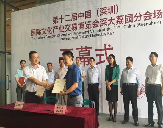 第十二屆中國(深圳)國際文化產(chǎn)業(yè)交易博覽會(huì)開幕當(dāng)天,江蘇銀行深圳分行與深圳大學(xué)簽署《江蘇銀行深圳-深圳大學(xué)創(chuàng)業(yè)學(xué)院戰(zhàn)略合作協(xié)議》。