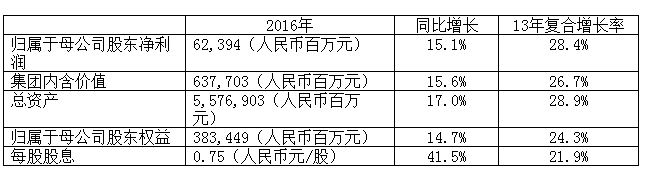 中國平安保險(集團)股份有限公司公布截至2016年12月31日全年業(yè)績。