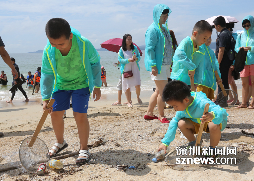 在當天的活動中,小朋友們除了學習海洋生物知識外,還在義工的帶領下,對梅沙一處公共沙灘進行了一次公益大清潔,踐行自己的環(huán)保公益誓言。小朋友們和家長一起合作,通過工具將海草、啤酒瓶、塑料袋等垃圾撿走。不到一個小時,便將2公里的沙灘清理干凈。