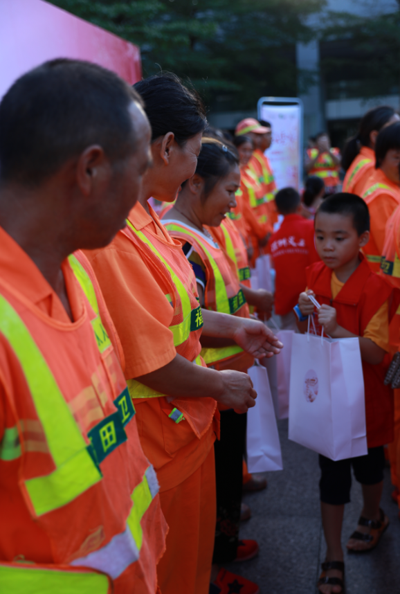 活動(dòng)現(xiàn)場(chǎng),深圳市關(guān)愛(ài)辦、中國(guó)銀行深圳分行代表主辦方還向現(xiàn)場(chǎng)30余位環(huán)衛(wèi)工人贈(zèng)送了早餐、餐券及工作馬甲等物資。