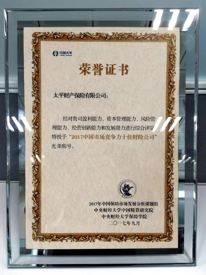 太平財(cái)險(xiǎn)連續(xù)兩年榮獲“中國(guó)市場(chǎng)競(jìng)爭(zhēng)力十佳保險(xiǎn)公司”