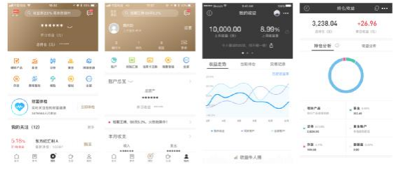 (理財頻道、“我的”頻道、我的收益及持倉/收益分析)
