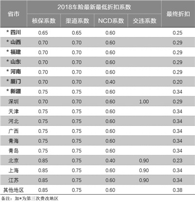 四川地區(qū)自主核保系數(shù)和自主渠道系數(shù)調(diào)整為0.65至1.15;山西、福建、山東、河南、廈門等地,自主核保系數(shù)和自主渠道系數(shù)調(diào)整范圍均為0.7至1.15;新疆地區(qū)自主核保系數(shù)和自主渠道系數(shù)調(diào)整范圍均為0.75至1.15。