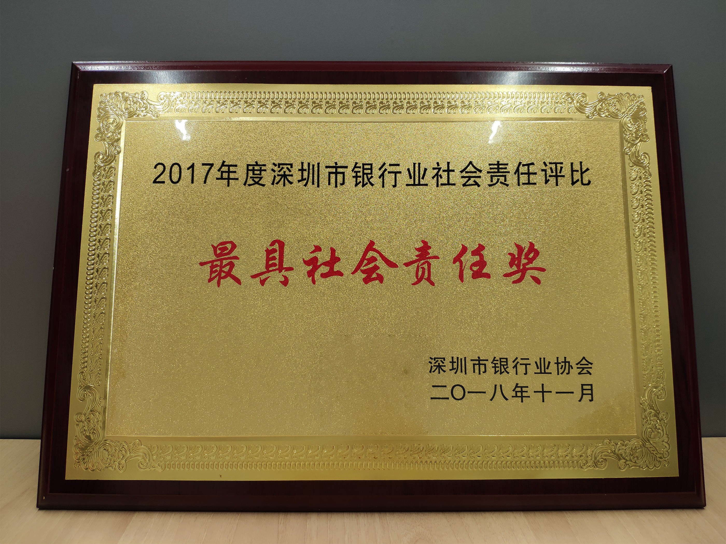 在深圳市銀行業(yè)協(xié)會主辦的2017年度深圳市銀行業(yè)社會責任評比活動中,華夏銀行深圳分行在20余家參評金融機構(gòu)中脫穎而出,榮獲深圳銀行業(yè)“最具社會責任獎”。