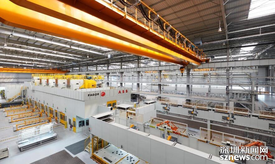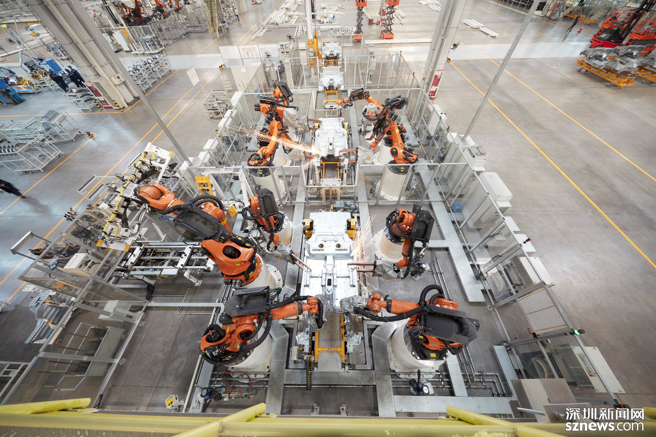 車身車間總占地面積9.9萬㎡,采用互聯(lián)機(jī)器人、柔性NC定位系統(tǒng)、柔性夾具切換系統(tǒng)、自動(dòng)化輸送系統(tǒng),標(biāo)準(zhǔn)化工藝體系、三層環(huán)網(wǎng)智能管理系統(tǒng)、國(guó)際安全標(biāo)準(zhǔn),主線自動(dòng)化率95%;采用柔性智能生產(chǎn)線,在同一條生產(chǎn)線可完成8個(gè)不同的車型無節(jié)拍損失自動(dòng)切換和混線生產(chǎn)。