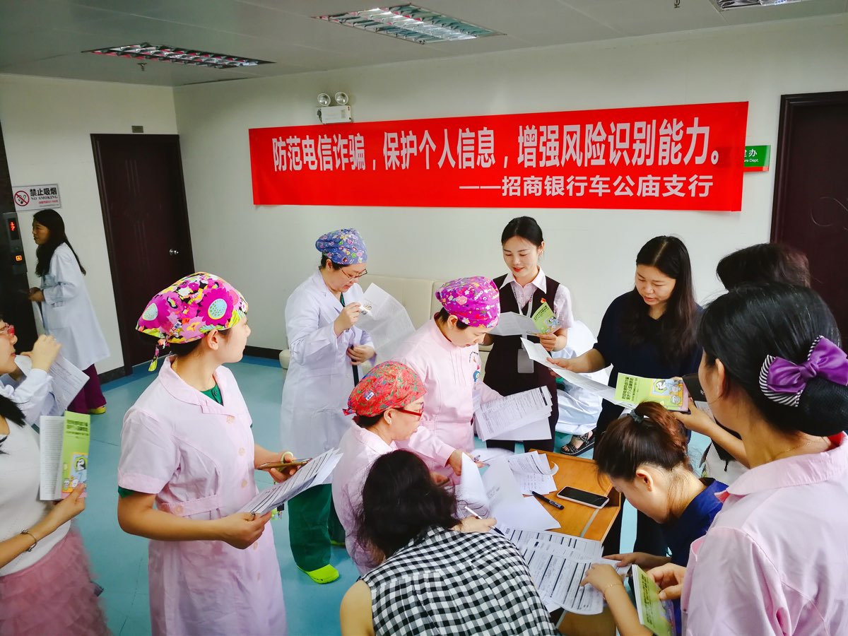 車公廟支行走進(jìn)深圳市婦幼保健院,以“防范電信網(wǎng)絡(luò)詐騙、保護(hù)個(gè)人信息,增強(qiáng)風(fēng)險(xiǎn)識(shí)別能力”為主題,宣傳提升金融素養(yǎng)、共建金融消費(fèi)的健康環(huán)境。消保先鋒隊(duì)著重解防范電信網(wǎng)絡(luò)詐騙小技巧,做到“不輕信,不匯款、不透漏、不掃碼、不點(diǎn)擊鏈接、不接聽轉(zhuǎn)接電話?!蓖瑫r(shí)向醫(yī)護(hù)人員普及保護(hù)個(gè)人金融信息保護(hù)、支付安全宣傳等內(nèi)容,邀請(qǐng)客戶關(guān)注“招小寶”公眾號(hào),閱讀轉(zhuǎn)發(fā)總分行推出的系列宣傳軟文。