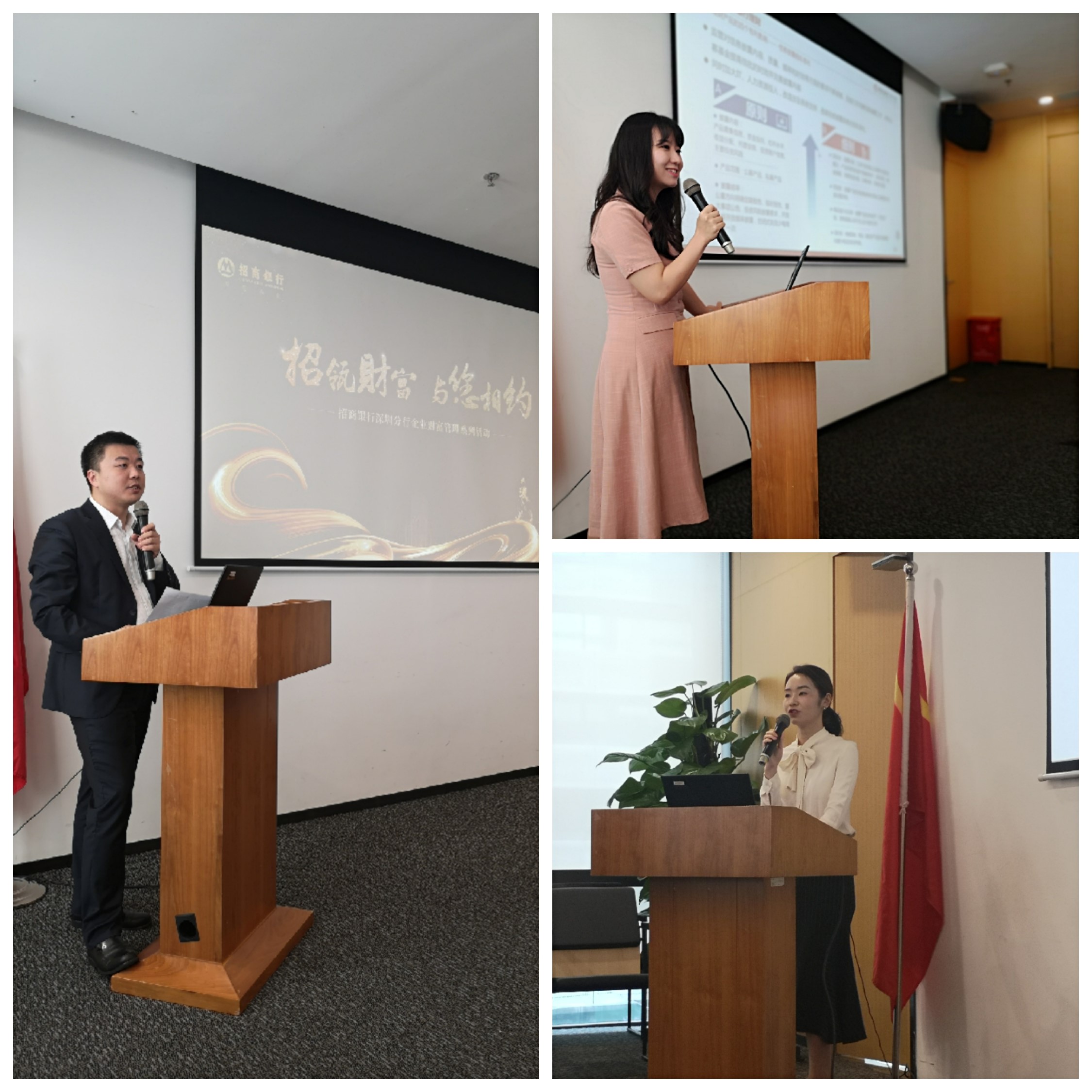 為提升招商銀行企業(yè)財(cái)富管理品牌,夯實(shí)全行企業(yè)財(cái)富管理客群,招商銀行深圳分行于2019年6月21日在分行大廈舉辦了“招瓴財(cái)富與您相約”——企業(yè)財(cái)富管理投資沙龍。總行資產(chǎn)管理部產(chǎn)品總監(jiān)、總行公司金融總部投資顧問出席了活動(dòng)并做專題演講。本次活動(dòng)共重點(diǎn)邀請(qǐng)我行代推介挽回客戶、新拓理財(cái)客戶共30余位企業(yè)客戶參加。