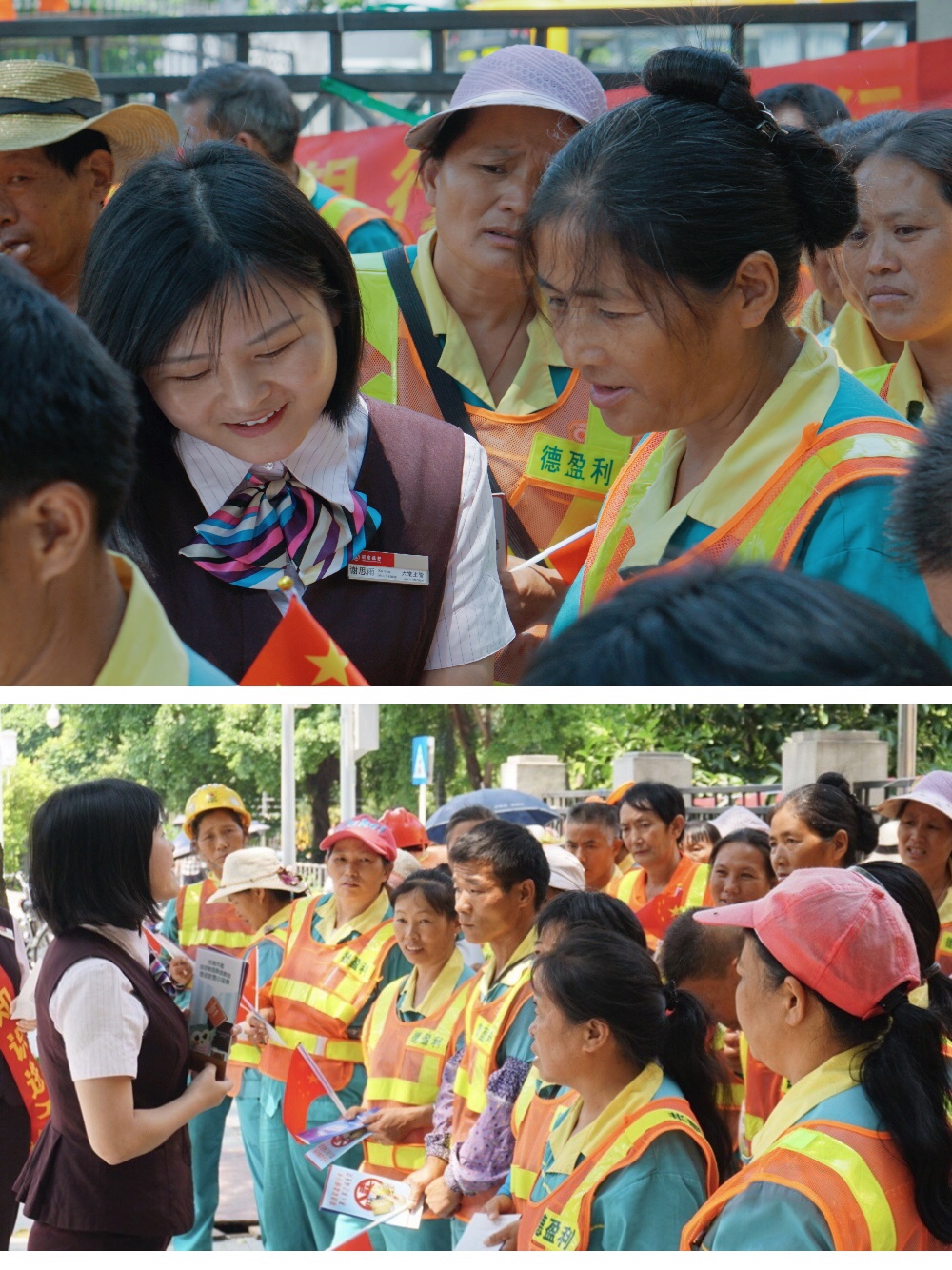 時代廣場支行走近環(huán)衛(wèi)工人,以金融知識宣教活動實現“招行紅”與“環(huán)衛(wèi)橙”的美麗相遇。