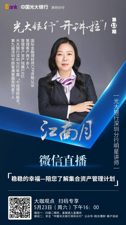 近日,光大銀行深圳分行將攜手《深圳晚報》于5月23日下午在線開展第十三期《光大銀行“開講啦”!》公益課堂。