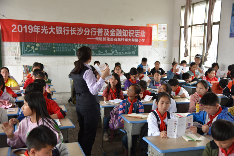 此外,近年來長沙分行還積極開展“小小銀行家”送金融知識與關(guān)懷慰問進山區(qū)活動,定期走進新化縣石龍村光大希望小學(xué)、新田縣苦志育才學(xué)校,為師生們普及金融知識,讓金融知識和服務(wù)在貧困山區(qū)依然能開花結(jié)果。