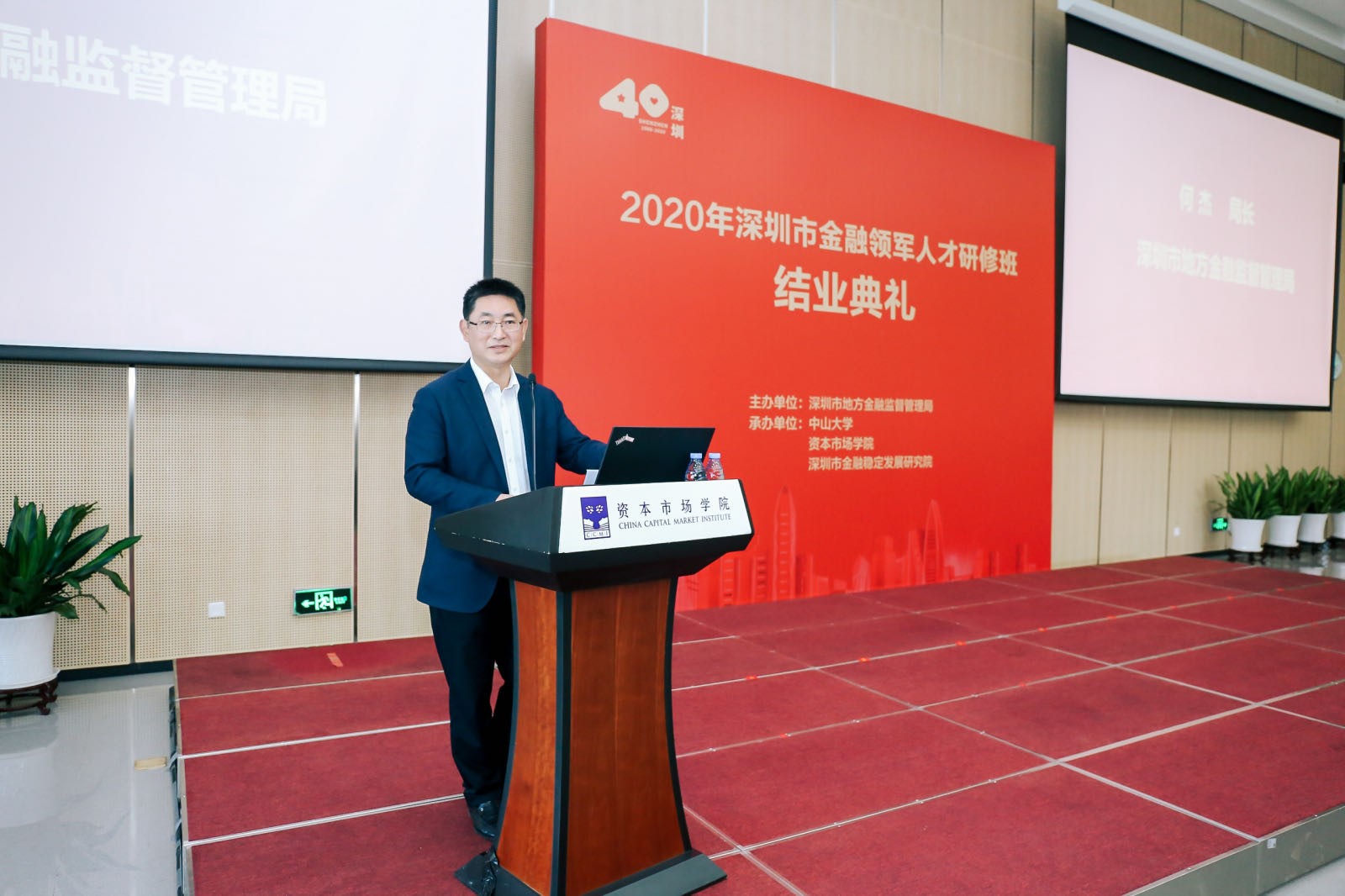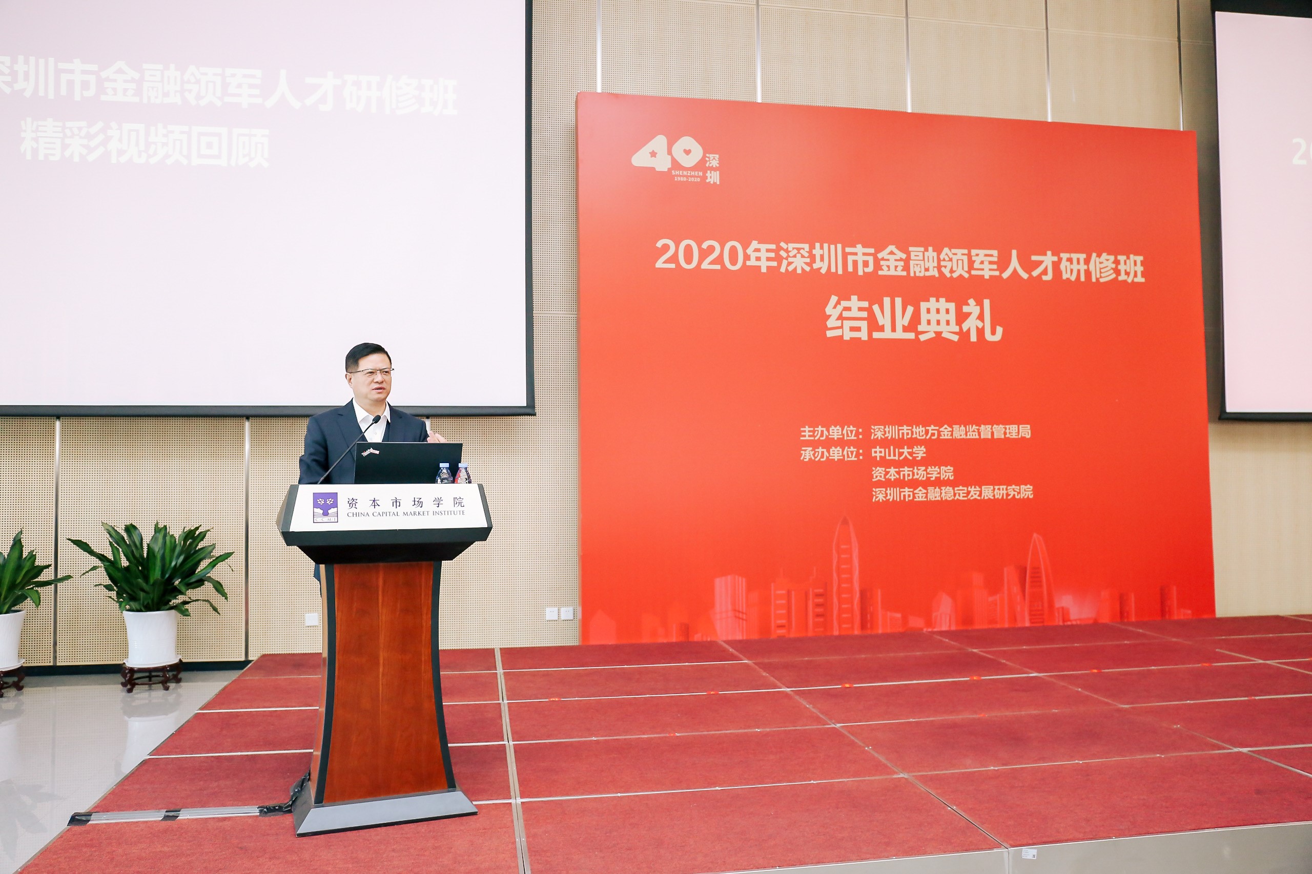 1月30日上午,2020年深圳金融領(lǐng)軍人才研修班結(jié)業(yè)典禮在資本市場(chǎng)學(xué)院隆重舉辦。本期研修班由深圳市地方金融監(jiān)督管理局主辦,中山大學(xué)、資本市場(chǎng)學(xué)院、深圳市金融穩(wěn)定發(fā)展研究院共同承辦。市地方金融監(jiān)管局黨組書記劉平生主持結(jié)業(yè)典禮并致辭,局長(zhǎng)何杰作總結(jié)講話。資本市場(chǎng)學(xué)院副理事長(zhǎng)、深圳市原副市長(zhǎng)唐杰教授,資本市場(chǎng)學(xué)院黨委書記陳自強(qiáng)、院長(zhǎng)金立揚(yáng)、副院長(zhǎng)張韶輝,深圳銀保監(jiān)局副局長(zhǎng)陳飛鴻、深圳證券交易所紀(jì)委書記邢力紅,市地方金融監(jiān)督管理局副巡視員林居正,中山大學(xué)嶺南學(xué)院院長(zhǎng)陸軍教授,以及市委組織部、人民銀行深圳市中心支行、深圳證監(jiān)局有關(guān)領(lǐng)導(dǎo)應(yīng)邀出席,本期研修班近110名學(xué)員參加活動(dòng)。