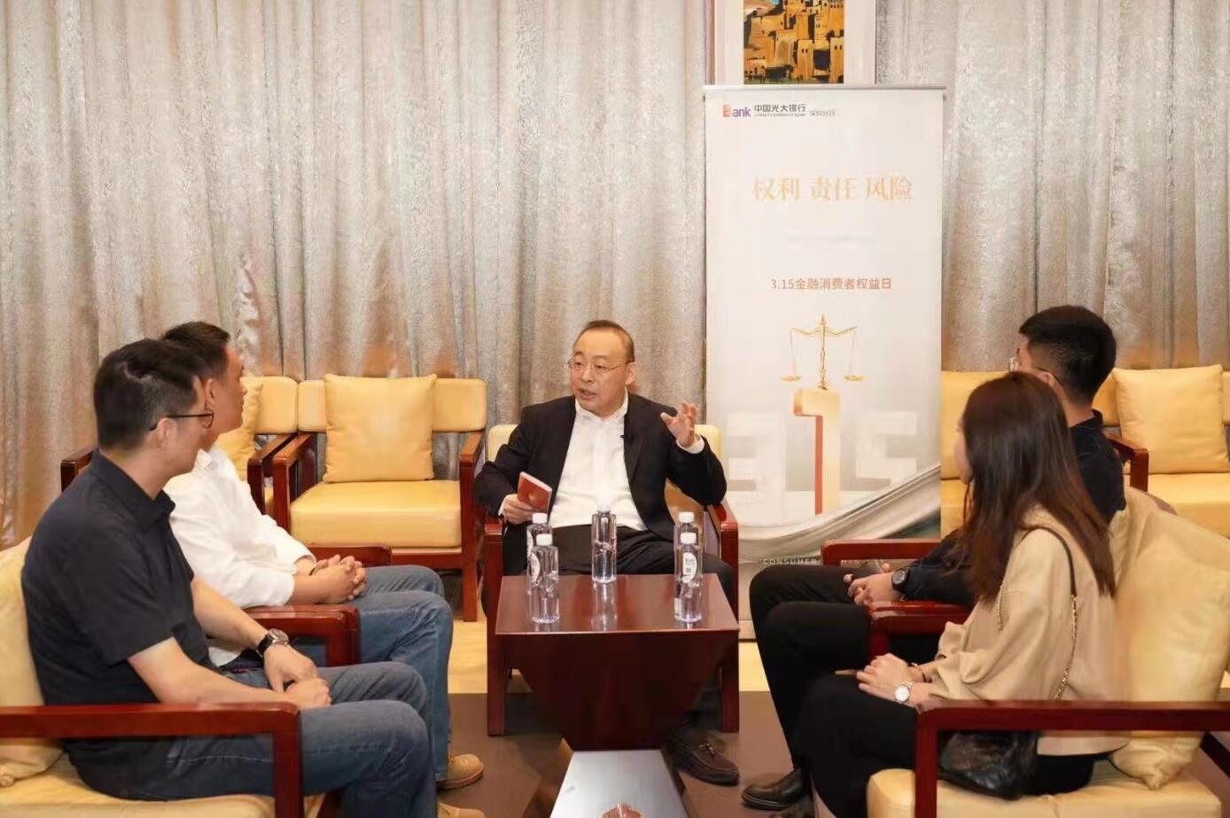 深圳新聞網(wǎng)·見圳客戶端2021年3月15日訊  近日,在3·15消費者權益日即將到來之際,光大銀行深圳分行行長韓學智面向受邀客戶變身消保“首席講解員”,宣傳普及金融知識、傾聽客戶心聲、推薦金融產(chǎn)品,呼吁消費者能提高金融防范意識。該活動是“3·15金融消費者權益日”系列教育宣傳活動的重要組成部分。