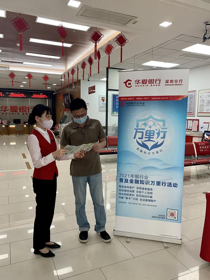 深圳新聞網(wǎng)2021年6月21日訊(記者 朱琳)為增強(qiáng)社會公眾參與金融活動風(fēng)險識別能力,引導(dǎo)消費(fèi)者正確運(yùn)用金融知識,增強(qiáng)風(fēng)險意識和責(zé)任意識,共創(chuàng)和諧金融環(huán)境,近日,華夏銀行深圳分行組織全轄網(wǎng)點(diǎn)開展2021年“普及金融知識萬里行”、“普及金融知識守住錢袋子”、“防范非法集資宣傳月”等金融知識宣傳普及活動。