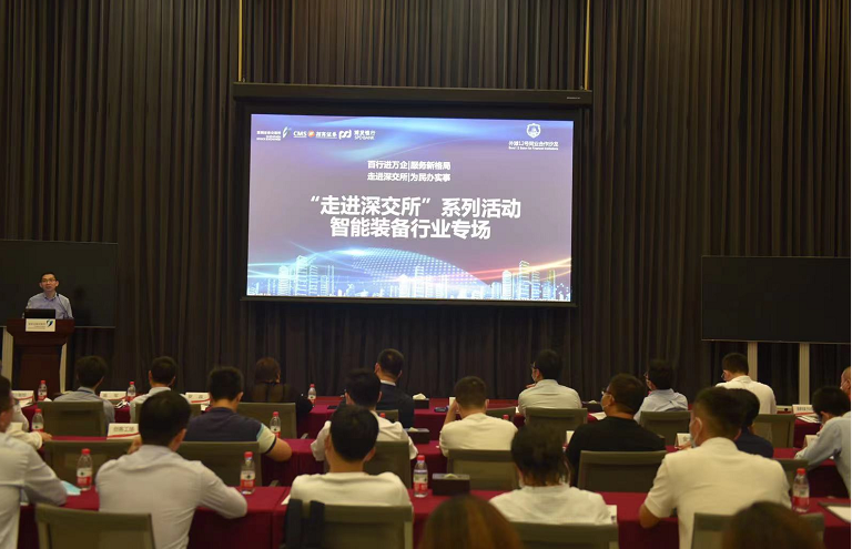 本次活動以智能裝備行業(yè)專場宣講與圓桌論壇為主,多家優(yōu)質智能裝備企業(yè)參加?;顒娱_始,深圳證券交易所市場發(fā)展部與浦發(fā)銀行交易銀行部相關領導從國家政策面、經濟面分析了中小企業(yè)、科創(chuàng)企業(yè)所處的歷史發(fā)展機遇,并介紹了“走進深交所”系列活動的初衷與意義——“信息共享、流程互通、功能互補,打造從0到1、從IP到IPO,共建為中小企業(yè)服務的金融生態(tài),攜手為國家經濟發(fā)展貢獻力量”。隨后,深圳證券交易所、浦發(fā)銀行與招商證券介紹了智能裝備行業(yè)發(fā)展趨勢下的投融資規(guī)劃、上市路徑、支持政策以及相關金融服務,并針對經營發(fā)展困惑同與會企業(yè)進行一對一、面對面的交流。