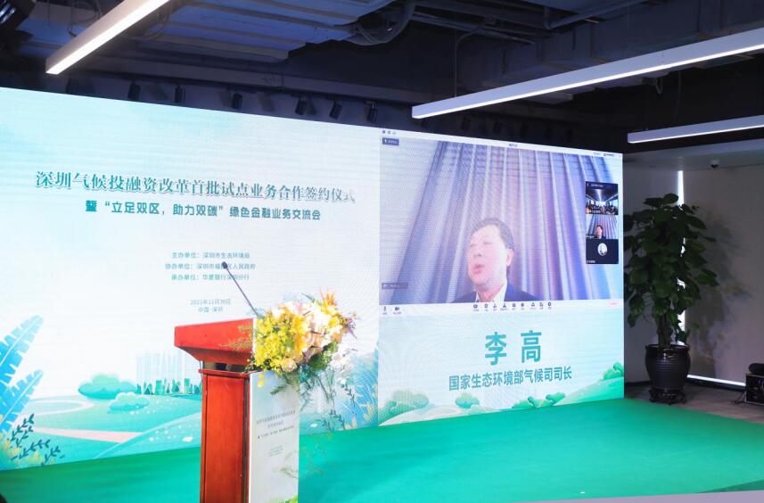 國家生態(tài)環(huán)境部氣候司李高司長通過視頻方式向會議發(fā)表致辭,向深圳氣候投融資改革首批試點業(yè)務合作簽約儀式的舉辦表示熱烈祝賀,向簽署協議的華夏銀行、創(chuàng)維光伏、拓日新能以及為推動協議簽署作出努力的深圳市區(qū)有關部門表示祝賀。