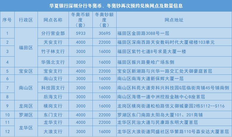 華夏銀行深圳分行共12家網(wǎng)點承辦冬奧紀(jì)念幣和紀(jì)念鈔發(fā)行工作,市民可憑有效身份證件通過以下三種線上渠道預(yù)約。