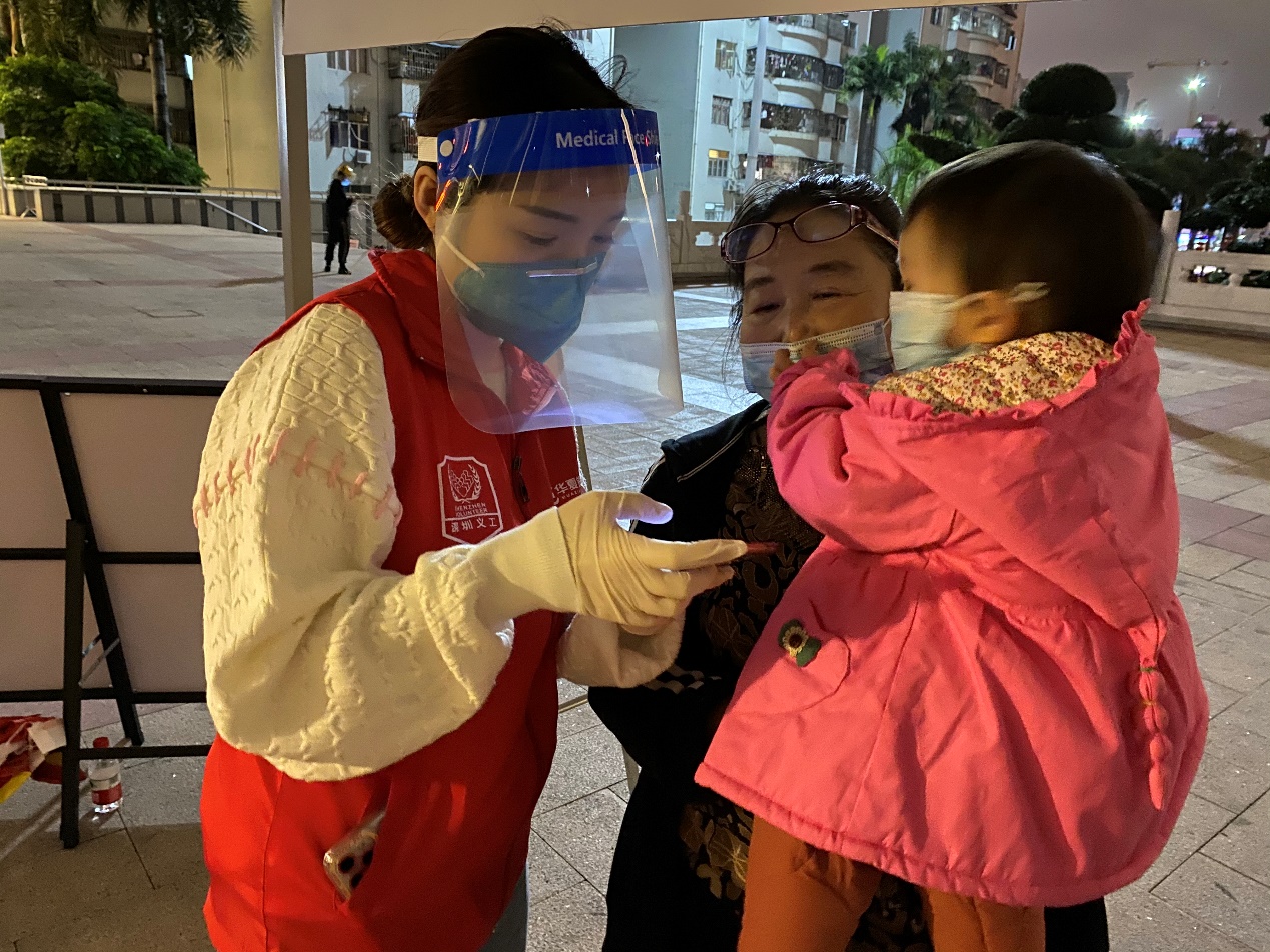 2月18日晚,寒風瑟瑟的夜里,皇崗社區(qū)核酸采樣點還排著長龍。華夏銀行深圳分行的黨員、青年團員迅速集結為“青年突擊隊”,在做好安全防護的基礎上,深入福田街道皇崗文化廣場、高發(fā)城馳廣場核酸采集點,協(xié)助防疫工作組維護現(xiàn)場秩序、身份信息登記等志愿服務工作,幫助社區(qū)提升核酸檢測效率。高新支行儲雨欣耐心地指導一位抱著小孩的阿姨錄入核酸檢測信息,她趕到核酸采樣點已經接近晚上8點?!皠倓倧闹熊堎~下班,雖然有些晚了,但我還是想來?!?/p>