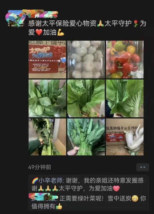 為積極應(yīng)對(duì)疫情,太平人壽上海分公司迅速反應(yīng),推出“太平守滬為愛加油”客戶關(guān)愛計(jì)劃。公司與滬上知名果蔬種植基地合作,將新鮮采摘的蔬果,由持有48小時(shí)內(nèi)核酸陰性證明的太平保險(xiǎn)代理人,為客戶朋友直線送達(dá)。