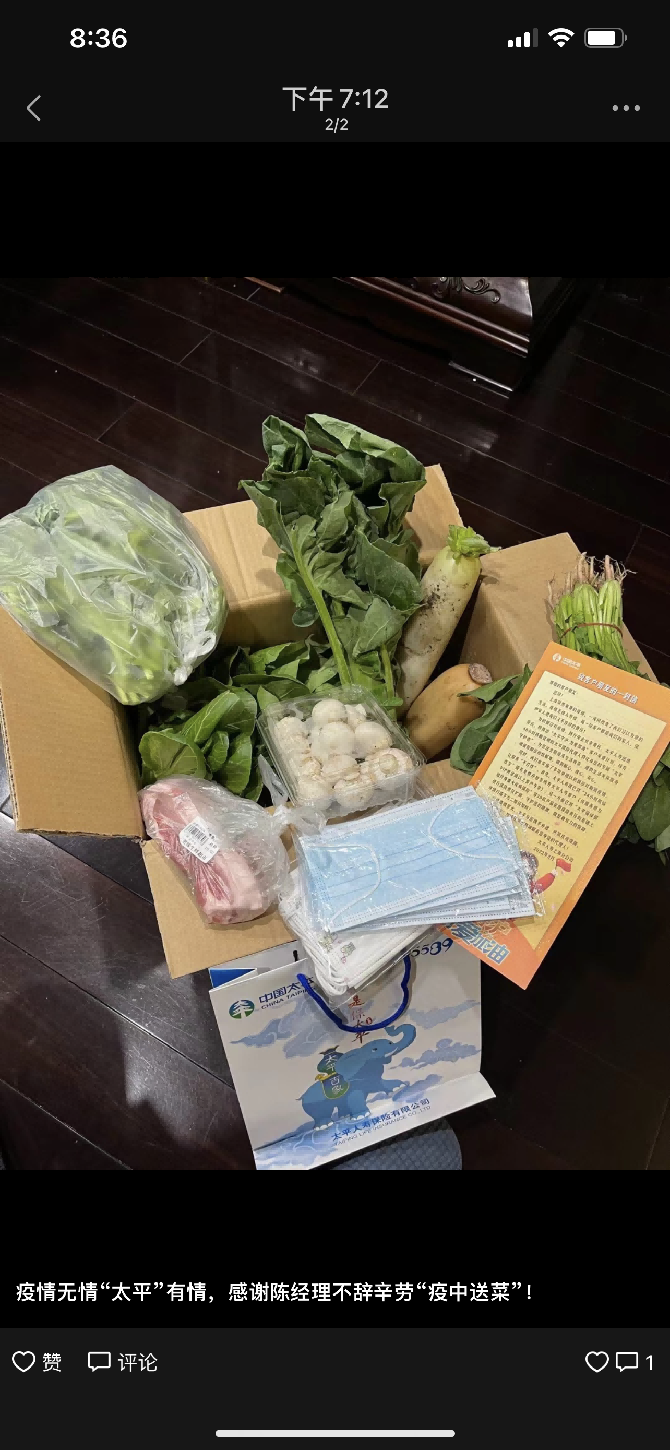 太平人壽代理人,紛紛化身太平守“滬”者,為疫情封控中的廣大客戶雪中送炭,切實(shí)解決了搶菜難的問題。據(jù)悉,活動(dòng)推出至今,已有上百位客戶收到了“太平守護(hù)者”送上的暖心慰問,越來越多的客戶感受到了太平的溫暖。