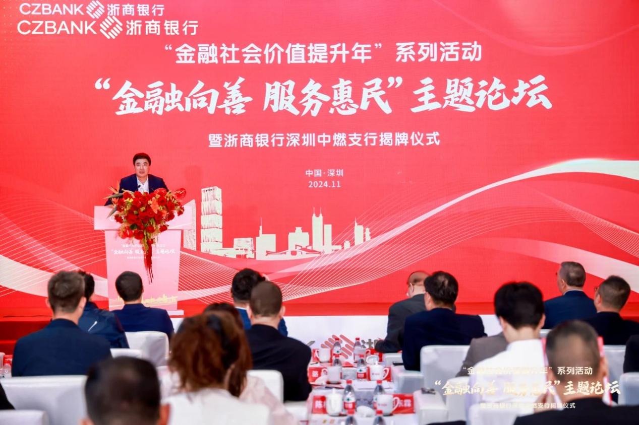 深圳新聞網(wǎng)2024年11月6日訊(記者 朱琳 通訊員 劉璇)為深入貫徹黨的二十屆三中全會(huì)和中央金融工作會(huì)議精神,11月4日,“金融向善 服務(wù)惠民”主題論壇暨浙商銀行深圳中燃支行揭牌儀式在中國(guó)燃?xì)獯髲B舉行。本次活動(dòng)也是浙商銀行“金融社會(huì)價(jià)值提升年”系列活動(dòng)之一。國(guó)務(wù)院發(fā)展研究中心原黨組成員、副主任余斌,中國(guó)上市公司協(xié)會(huì)會(huì)長(zhǎng)宋志平,浙商銀行黨委書記、董事長(zhǎng)陸建強(qiáng),中國(guó)燃?xì)饪毓捎邢薰径戮种飨瘎⒚鬏x等嘉賓出席活動(dòng)。
