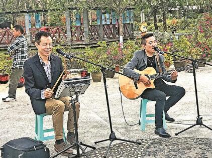 街景是一個城市最直觀的景象。富有個性的建筑,形式多樣的綠化設計,蘊含城市文化符號的公共設施,都可以成為城市街景的有效點綴。去年以來,寶安多了一道“動起來”的城市街景——街頭藝人表演。昨日,區(qū)公共文化服務中心文化專干朱韶軍和潘衛(wèi)東、鄭璇、楊鈺哲和李希文利用周末時間分別在寶安公園、海濱廣場、西灣紅樹林公園,為市民獻上吉他與架子鼓經(jīng)典曲目演唱、二胡演奏、手風琴演奏與經(jīng)典歌曲聯(lián)唱,讓在這些地方休閑、娛樂的市民感受到街頭藝術表演的魅力。