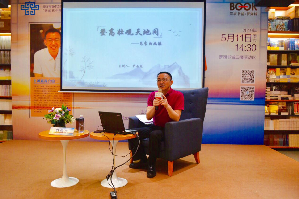 5月11日下午,“新時代中華優(yōu)秀傳統(tǒng)文化進社區(qū)”項目首場講座之“登高壯觀天地間——為李白畫像”在羅湖書城三樓開展。本次活動由深圳市壹書文化傳播有限責任公司、深圳書城羅湖城主辦,特邀深圳出版發(fā)行集團黨委書記、總經理尹昌龍博士擔任主講嘉賓,解讀多面詩仙李白,為聽眾奉上一場難得的文學盛宴。講座還未開始,現(xiàn)場已座無虛席,過道上站滿了李白迷,聽眾們早早就來靜候著了。