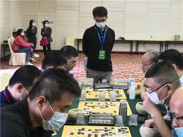 本屆聯(lián)賽在仍在抗疫的形勢(shì)下來之不易,賽事組委會(huì)非常珍惜,在防疫方面下了一番功夫。本次賽事執(zhí)行主任、著名國(guó)手梁偉棠九段介紹說:組委會(huì)在本次賽事《補(bǔ)充規(guī)定》中要求“本屆賽事因?yàn)橐咔榉揽匦枰?,全體人員必須佩戴口罩,掃碼入場(chǎng),并全程不得摘下口罩;體溫過高者謝絕入場(chǎng)”。記者觀察到,現(xiàn)場(chǎng)的防疫落實(shí)還是比較到位的,一是在賽場(chǎng)入口布置了三人團(tuán)隊(duì),加強(qiáng)了掃碼、體溫檢測(cè)、提醒大家戴口罩,凡是入場(chǎng)的隊(duì)員、工作人員以及觀戰(zhàn)的圍棋愛好者,都必須進(jìn)行體溫檢測(cè),符合正常體溫的方可入場(chǎng)參賽;二是要求參賽隊(duì)員和工作人員戴口罩;三是加強(qiáng)賽場(chǎng)巡查,對(duì)沒有自覺戴口罩的在場(chǎng)人員進(jìn)行勸導(dǎo)。總體來說,賽場(chǎng)防疫秩序良好。
