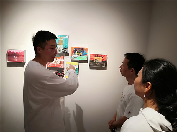聯(lián)展現(xiàn)場三位作者向參觀者介紹創(chuàng)作經(jīng)歷及畫作意蘊。