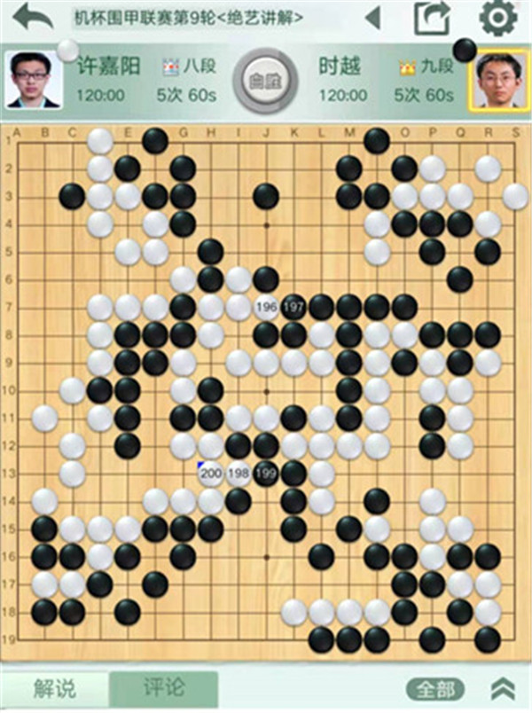 四臺等級分排名15的時越執(zhí)黑對陣排名14的許嘉陽。黑棋開局行棋有些平緩,慢慢等機(jī)會。但之后白棋發(fā)揮上佳,黑棋沒有明顯機(jī)會落敗。