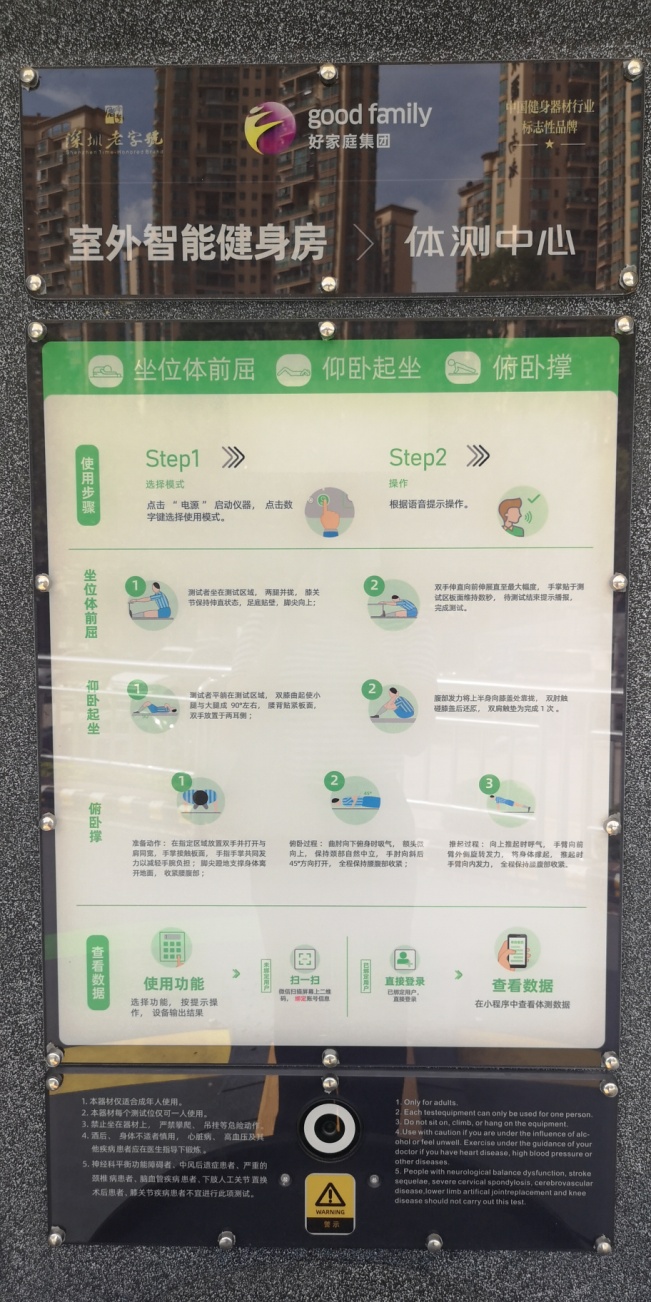 研發(fā)該套設(shè)備的深圳企業(yè)好家庭事業(yè)有限公司負(fù)責(zé)人張佳華表示,“此次被調(diào)研的室外智能健身設(shè)施已經(jīng)升級至4.0版本?;谖锫?lián)網(wǎng)、5G與大數(shù)據(jù)系統(tǒng),這套智能化設(shè)施擁有人臉識別、無感采集健身數(shù)據(jù)、手機(jī)掃碼可一鍵獲取專屬運動處方的功能,可為市民提供個性化、多元化、科學(xué)化的健身服務(wù)?!?/p>
