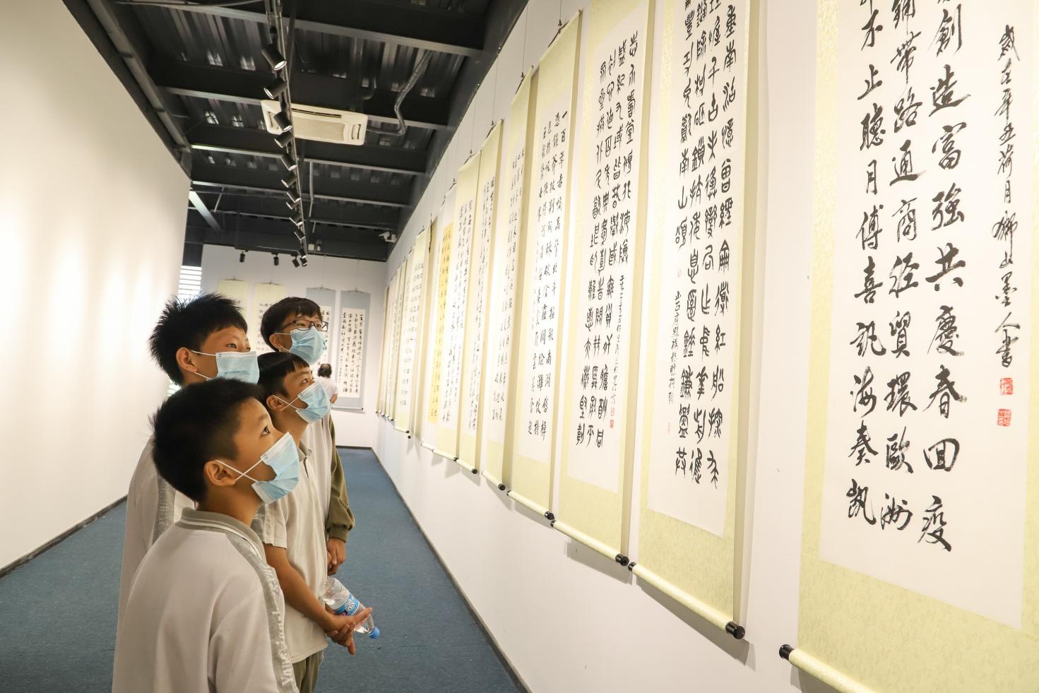 展覽開幕式上,吸引了眾多楹聯(lián)家、楹聯(lián)愛好者以及市民游客前來參觀,更有學(xué)校師生組團(tuán)來參觀。中國楹聯(lián)學(xué)會顧委副主任、廣東楹聯(lián)學(xué)會顧委主任鄒繼海在開幕式上介紹到,百字百聯(lián)百幅書法作品慶建黨百周年,這四個一百的征聯(lián)活動在全國是最早的,也是唯一的,開創(chuàng)了楹聯(lián)文化界征聯(lián)的先河,值得高興,也值得我們自豪。隨后,鄒繼海宣布此次“觀音山杯”百字百聯(lián)百幅書法作品慶祝中國共產(chǎn)黨建黨一百周年的聯(lián)墨展觀音山站正式開幕。