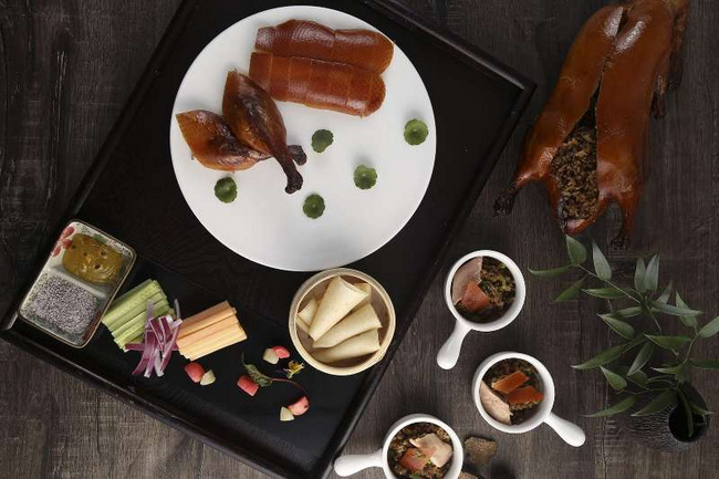 北京烤鴨距今已經(jīng)有大約180年的歷史了。梧桐PLUS的烤鴨,展現(xiàn)出的是完全不一樣的時髦魅力。