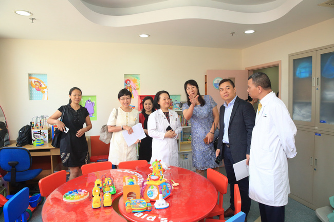 活動嘉賓參觀設(shè)在上海兒童醫(yī)學中心內(nèi)病區(qū)內(nèi)的麥當勞叔叔愛心活動室