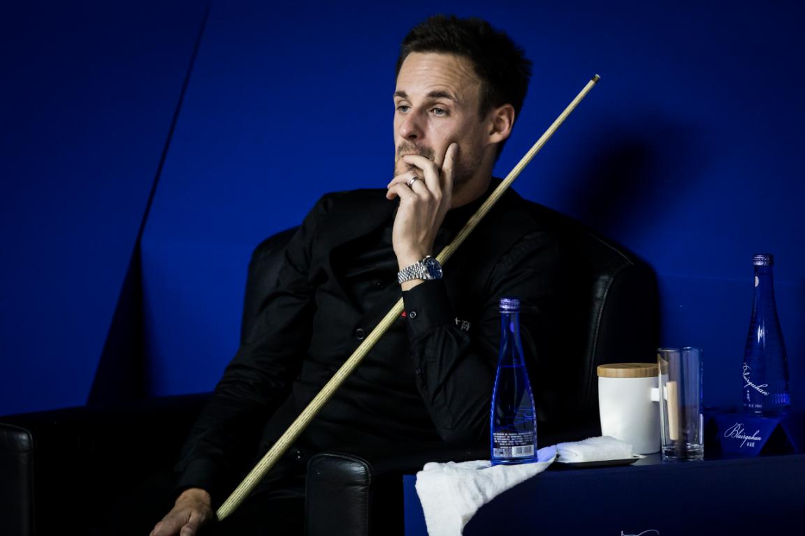 斯諾克可以說是十分講究視覺與氛圍的運動,哪怕不是“戲劇天才”如奧沙利文,當所有選手按照臺球比賽的禮儀穿著西裝馬甲、領(lǐng)結(jié)、襯衣、西褲和皮鞋、比賽全程都恪守著紳士的美德——沉默和冷靜;當他們在黑色皮椅上稍作休息,優(yōu)雅地飲用玻璃瓶裝的Blairquhan本來旺礦泉水或蘇打水……觀眾有時候很難分辨,這到底是一場競技體育,還是一場真實的舞臺劇。