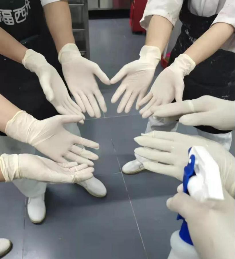 全面升級(jí)消毒工作。采購的新鮮水果,需經(jīng)過專門的水果清洗劑進(jìn)行清洗;操作臺(tái)的生產(chǎn)工具都會(huì)定時(shí)定期使用75%的醫(yī)用酒精消毒;此外,幸福西餅還為在崗配送員發(fā)放75%酒精,增加配送員的手部、保溫箱、配送車輛和蛋糕外包裝盒的消毒頻次;員工居住的宿舍,也進(jìn)行了全方位的消毒升級(jí)。