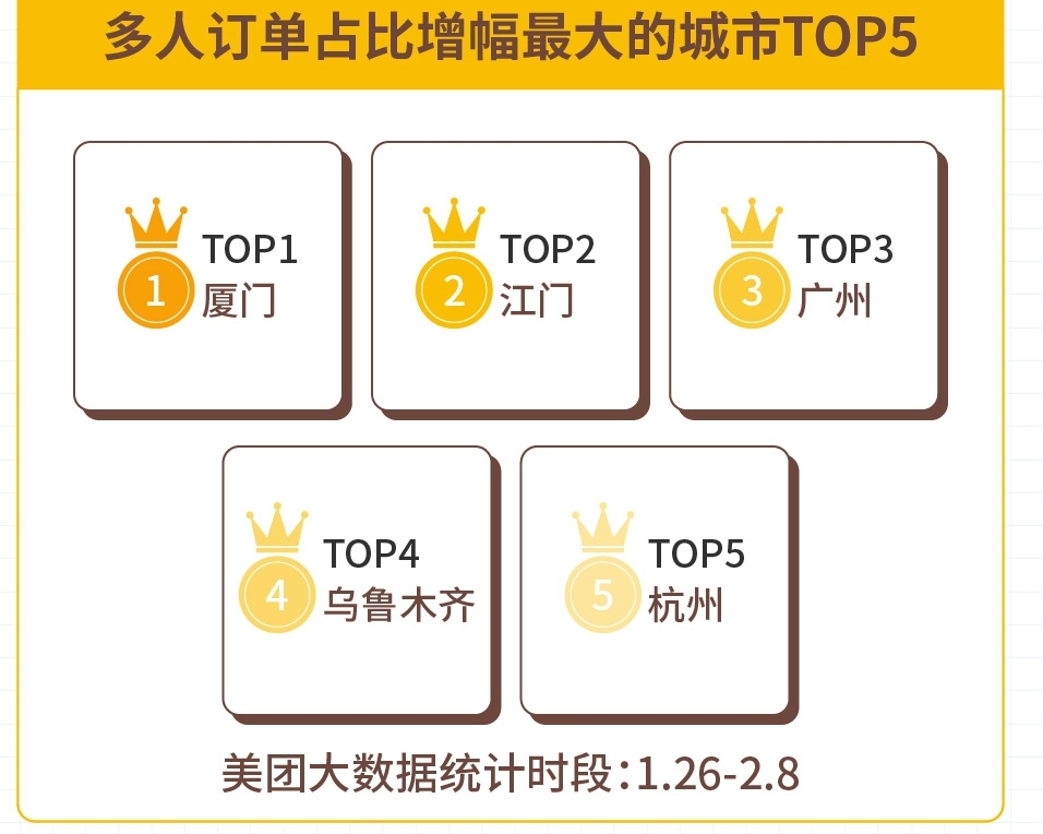 報(bào)告顯示,在1月26日至2月8日期間,在使用“無(wú)接觸配送”服務(wù)占比最高的城市中,武漢、揚(yáng)州、濟(jì)南、南京、哈爾濱排在了前五位。從用餐人數(shù)來(lái)看,2人份及以上餐食占總體訂單的比例相比較平時(shí)增長(zhǎng)了31.7%。采用“無(wú)接觸配送”的訂單占到了整體單量的80%以上,且每一單外賣(mài)都使用“無(wú)接觸配送”服務(wù)的用戶占到66%。