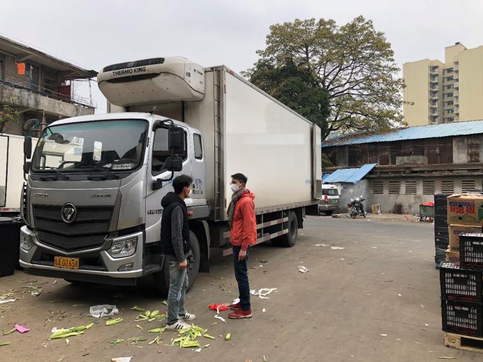 市場(chǎng)的檔主、物流車司機(jī)、加工工人,全部都帶上口罩,看新聞講跟人講話要保持距離,但忙起來(lái)真顧不了那么多,大家都在“搶貨”,這頭跟檔主商量好,那頭貨可能被拉走了?!柏浺阶约旱募庸ぶ行?,才算是你的?!币?yàn)榇汗?jié)批發(fā)市場(chǎng)的檔口工人回去一大半了,沒人送貨,緊張的時(shí)候,有女同事干脆自己借一輛三輪車,把談好的貨源直接拉走。