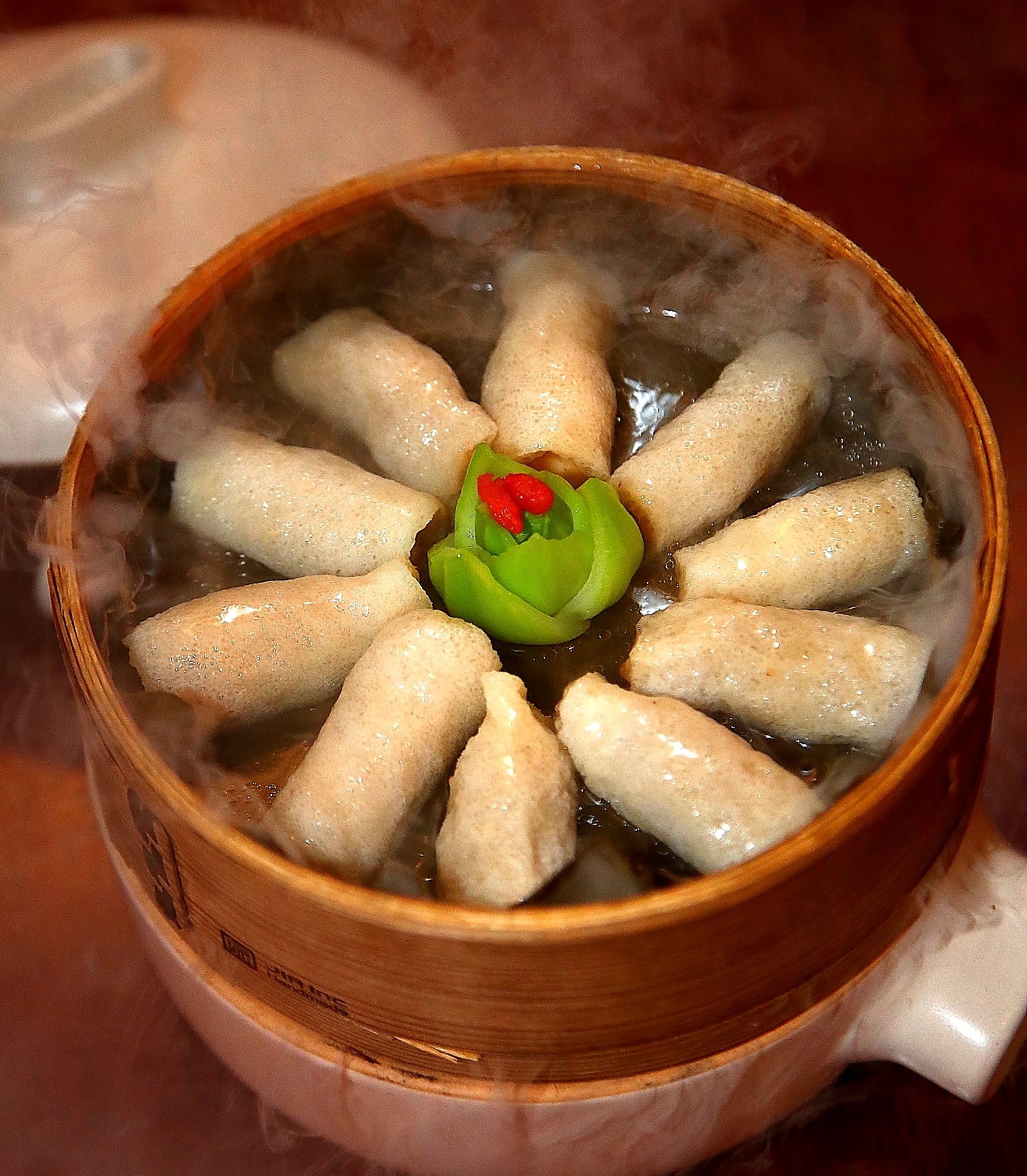 這款也是蒸雞,不過(guò)是將蒸雞起骨拆肉釀入竹笙中,比較復(fù)雜