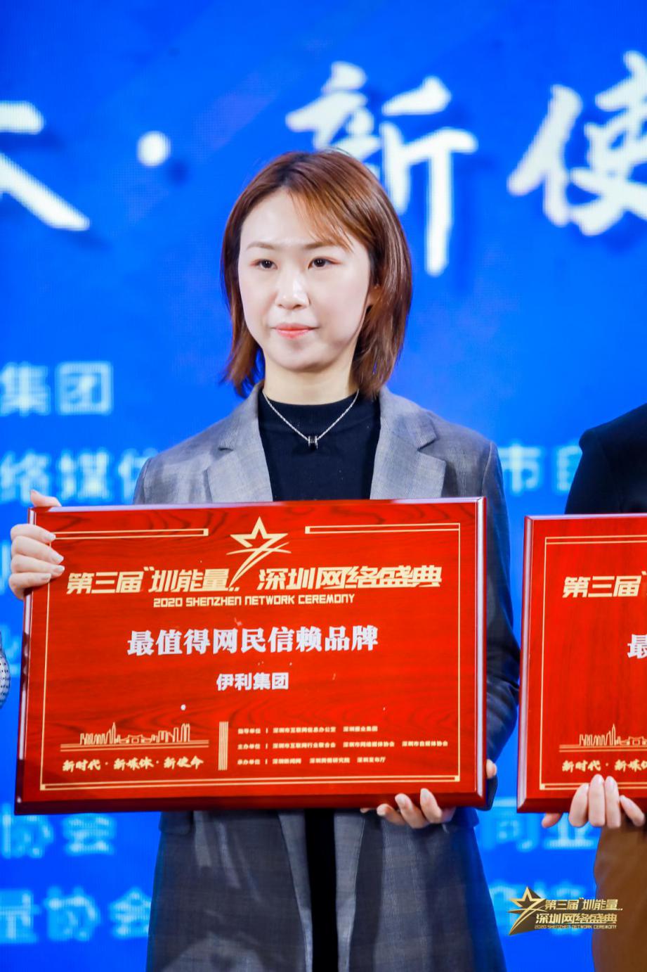 (圖:伊利集團(tuán)榮獲“最值得網(wǎng)民信賴品牌”)
